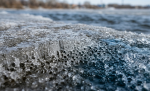 После повышения температуры воздуха структура льда на реке Иртыш и других водоемах резко изменилась.